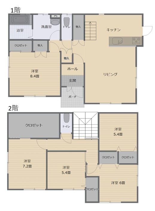 | 間取 | 5SLDK(洋室8.4畳1部屋、洋室7.2畳1部屋、洋室5.4畳2部屋、洋室6畳1部屋) |