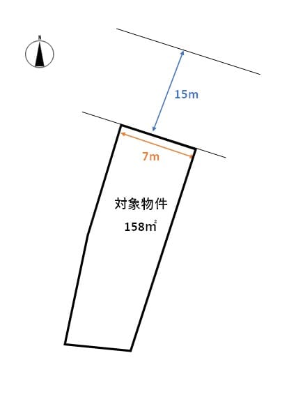 | 接道状況 | 方角:北 道路幅員:15m 公私区分:公道 接面:7m |