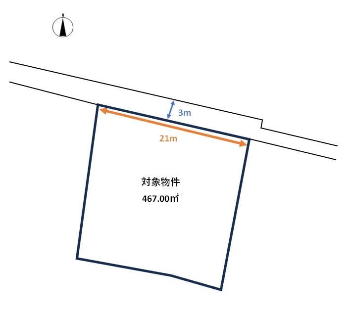 | 接道状況 | 方角:北 道路幅員:3m 公私区分:公道 接面:21m |