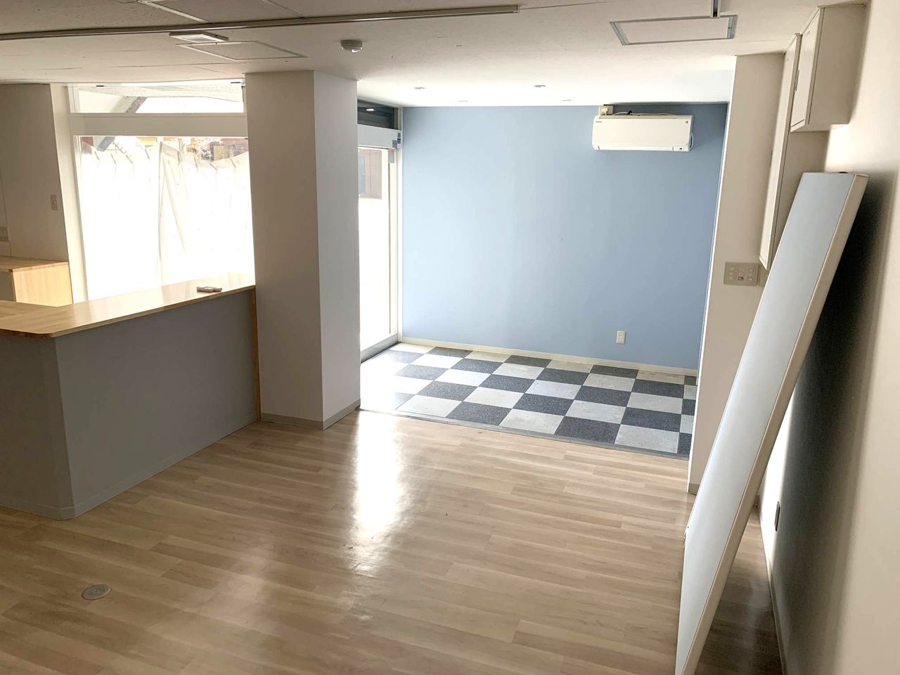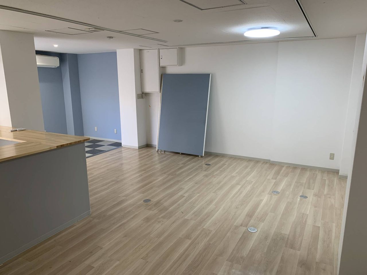 いなっせ南側にある貸店舗1階。事務所やサロン、塾や教室、展示場向きです。カウンターテーブルあり。