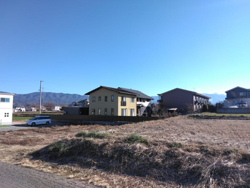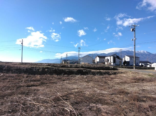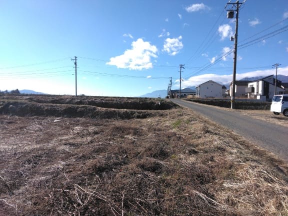 | 備考 | ・農業振興地域地区除外申請(5月9月1月の年3回受け付け)と農地転用第5条許可(農転)が必要です。農振除外の申請から農転の許可まで約1年位かかります。・西側の道路にある上水道は私設管ですが、分岐の承諾を頂いてあります。・下水道の本管は前面道路にありませんが、北側の道路の本管を西側道路敷きを通り延長してくることは可能です。下水道を敷設する場合は、下水道受益者負担金301,800円(敷地㎡×600円)が必要です。・伊那土地改良区の土地改良区決済金と雨水排水費のどちらも売主が負担します。(約27.6万円)・令和3年7月に測量分筆済です。・近隣に遺跡包蔵地があります。 |
