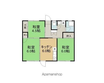 | 間取 | 3DK(和×6帖 6帖 4.5帖) |