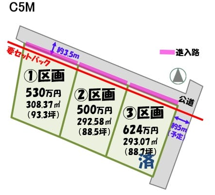 接道状況 方角:北 道路幅員:3m 公私区分:公道 接面:18.14m