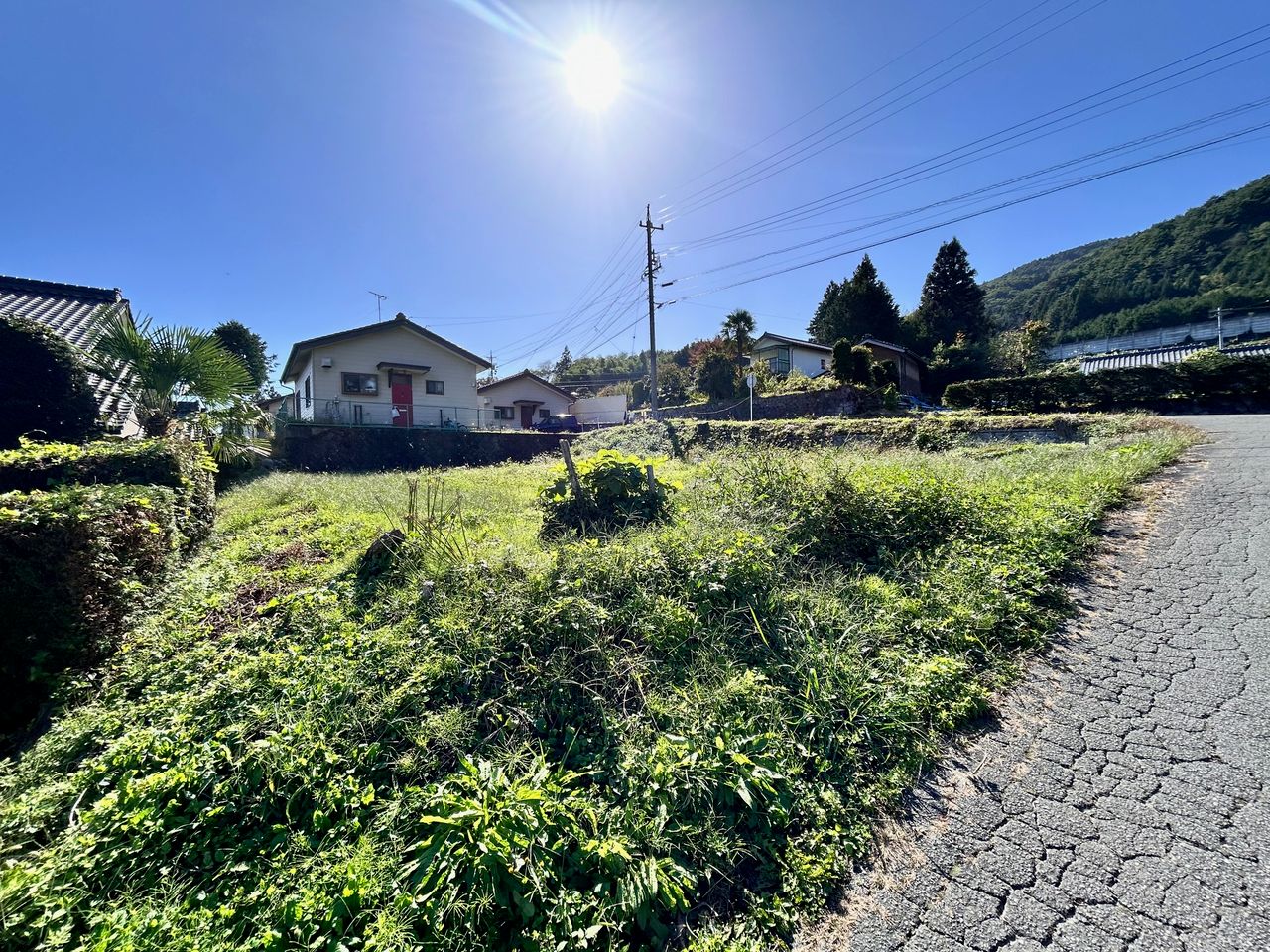 | 備考 | ・要農振除外 ・下水道接続義務区域のため、浄化槽設置不可です ・下水道接続には盛土が必要です ・敷地内西側に構造物(擁壁)があります ハザードマップ:土砂災害警戒区域(南東側一部) その他費用:上水道加入金・下水道負担金・印紙代・農振除外・農地転用・所有権移転登記 |